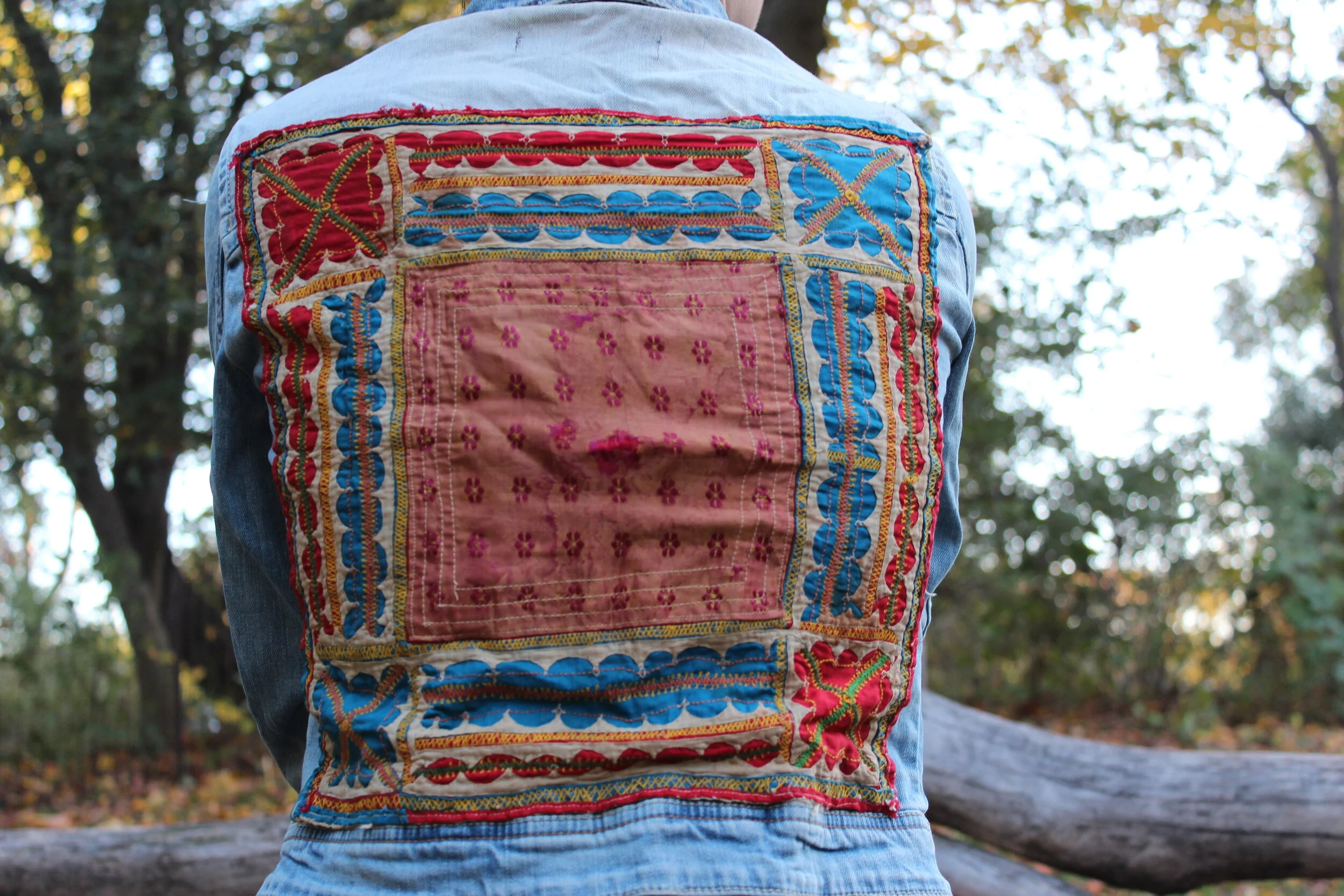 Red White and You is a piece created from Bhandari textiles from Gujarat and recycled denim. This piece represents a play on the American Flag colors of red, white, and blue- representing freedom, in a country that feels anything but free (circa August 2020, with COVID 19, travel restrictions, martial law, and undercover police raiding peaceful protestors). This piece was created to help people from India to value their own crafts, and see how beautiful Indian culture is, instead of white-washing it with fantasies of the “American Dream” which only existed for certain demographics in earlier generations.